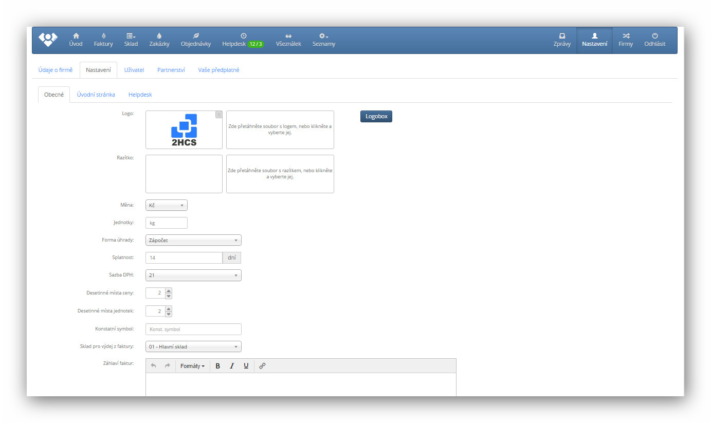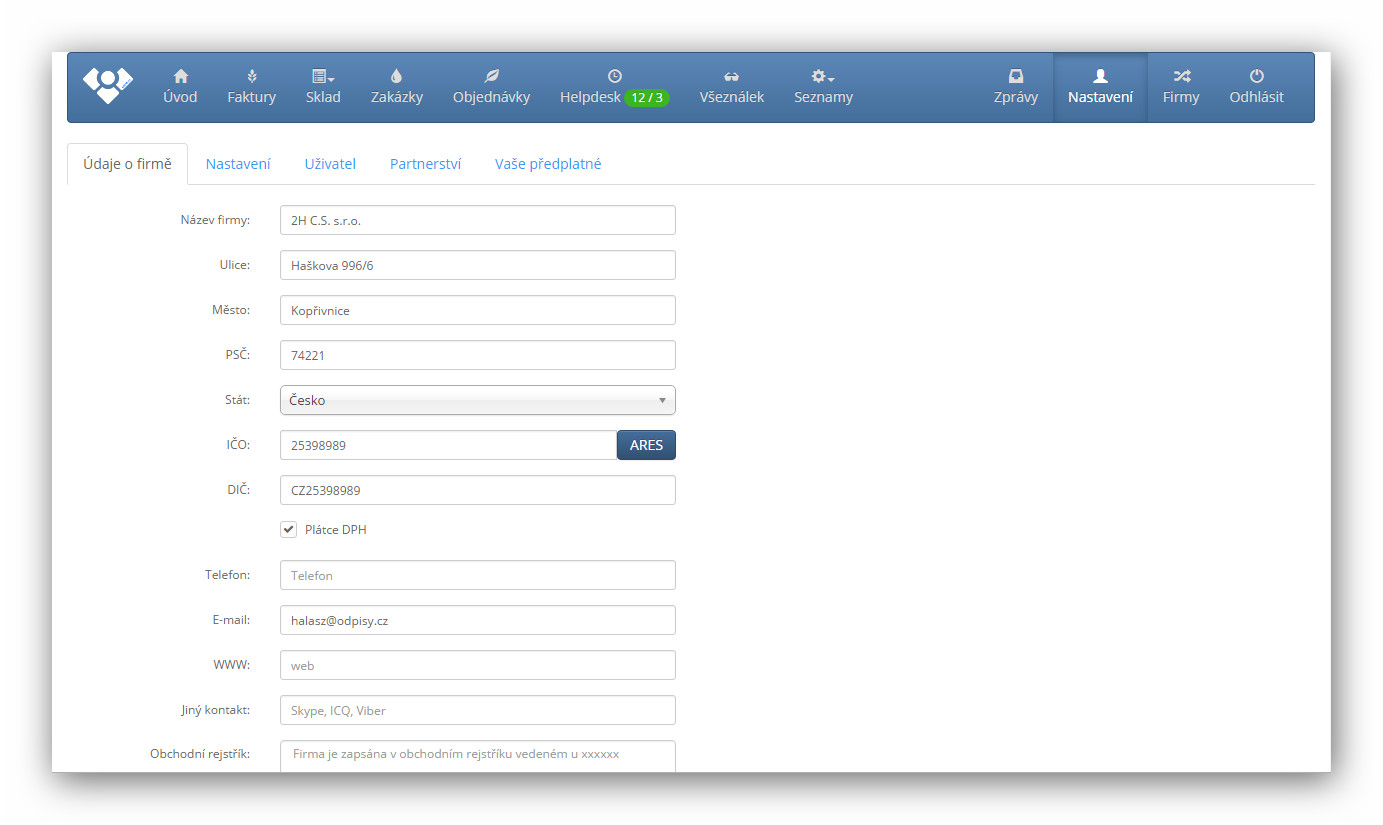 • Možnost práce s více firmami v jednom uživatelském účtu
