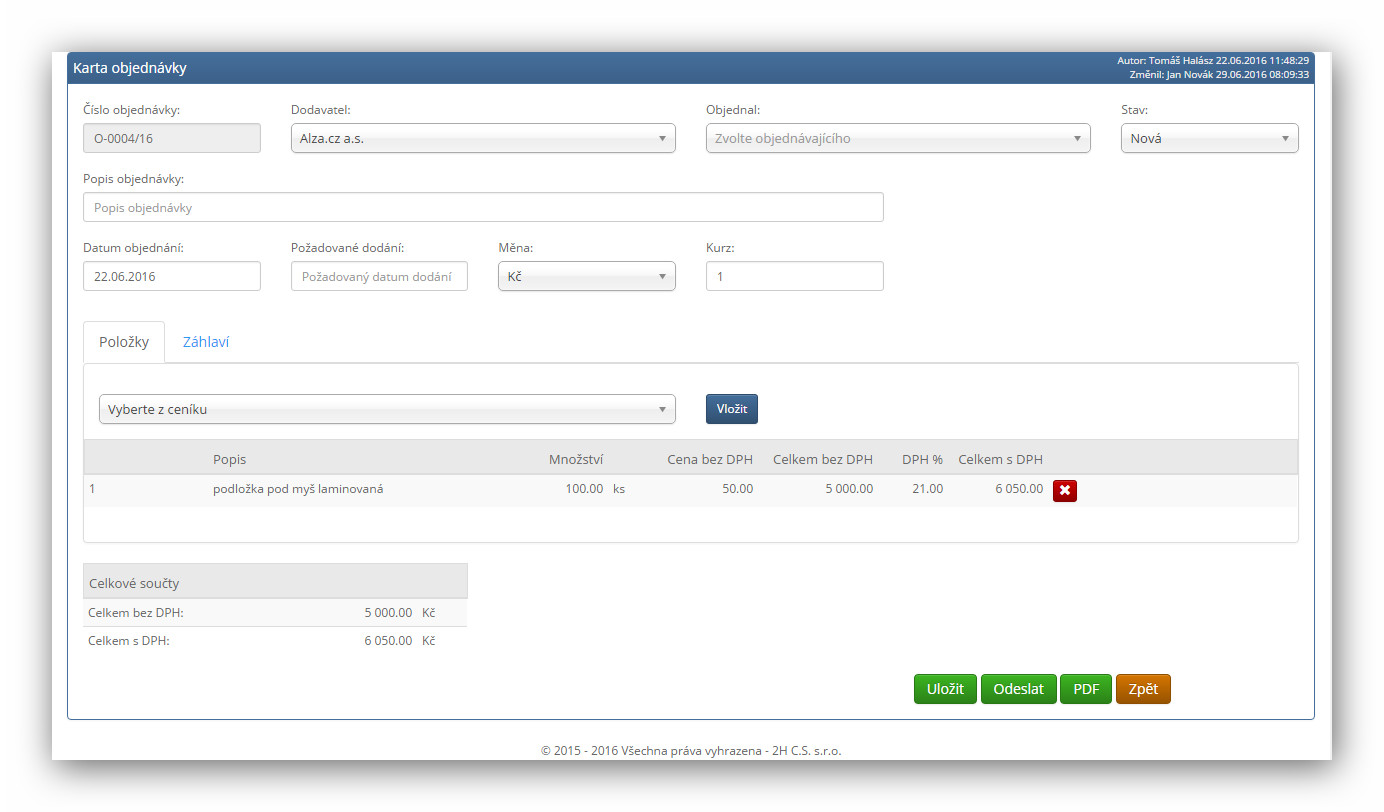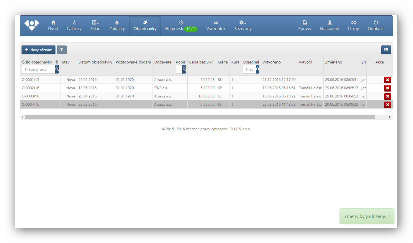 Modul Objednávky slouží pro evidenci a práci s Vašimi objednávkami dodavatelům.
