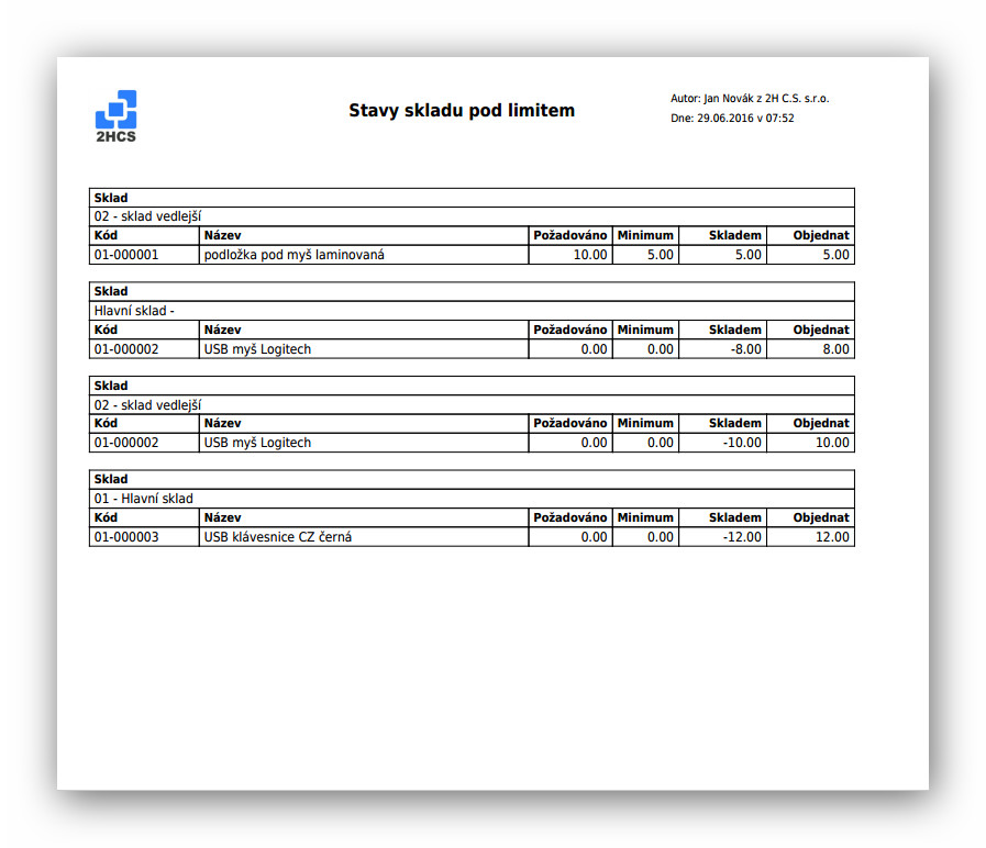 Výstupní sestavy jsou určitě nedílnou součástí skladové evidence. Pro potřeby Vaše nebo účetní jsou zde inventurní spoupisy zvolených skladů, podlimitní stavy, přehled pohybů na skladových zásobách.